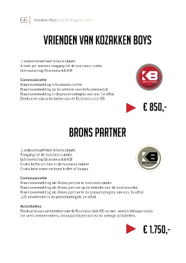 Deelname aan activiteiten van de Business club KB op niet –wedstrijddagen zoals
