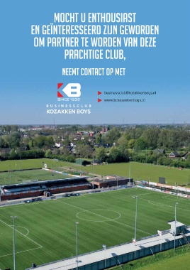 mocht u enthousiast en geïnteresseerd zijn geworden om partner te worden van deze prachtige club, neemt contact op met businessclub@kozakkenboys.nl www.bckozakkenboys.nl BUSINESSCLUB KOZAKKEN BOYS